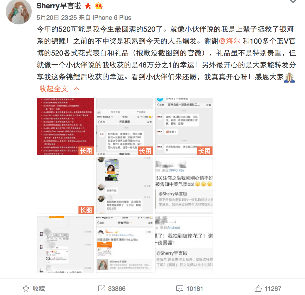 520表白日,海爾搞了一個事情,聯合60多家藍V,給一位幸運粉絲送禮物。這條轉發評論送禮物的微博在半個小時之內就轉發過萬。